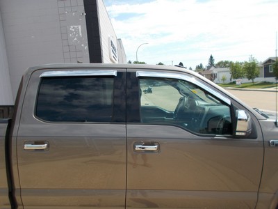 Manufactured by No Limits Performance | 6198C | 2015-22 F150, 2017-22 Superduty front window ventvisors, chrome, No Limits Performance ventvisors allow fresh air into the cab while keeping rain out. Part number is for one pair made to fit the front doors. Made from a Black poly carbonate material which is virtually unbreakable. Fits regular, extended and crew cab fr, A vent visor — also commonly known as a rain guard, rain visor, window visor, or window deflector – protects you and the interior of your truck from wet weather, by deflecting rain, snow, sleet, wind and hail away from the windows of your vehicle, thus allowing you to keep your windows open even in wet, rainy weather. The ones listed here attach to your truck by the pre-installed 3M 2-way tape. These are not an In-channel ventvisor. All you need to do to install them is to make sure that your truck is warm and clean. We recommend using isopropyl alcohol or another product that will remove any wax or grease from your door to ensure the best adhesion. Although we do offer a 90 day warranty it does not cover ventvisors coming off as this is generally due to improper installation. Once you have the surface of the door clean and dry you can align them and slowly peel off the 2-way tape while pressing them firmly to the door making sure that they are aligned properly. Product information updated on 2023-02-15